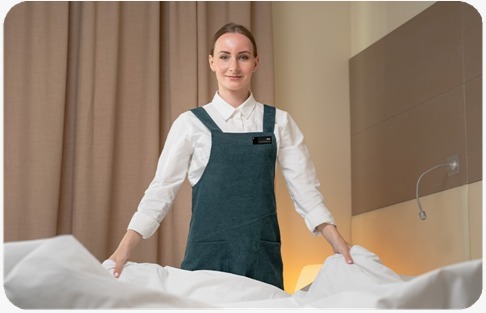 The digital badges worn by hotel staff during room services also enhance hospitality, housekeeping transparency, and service security