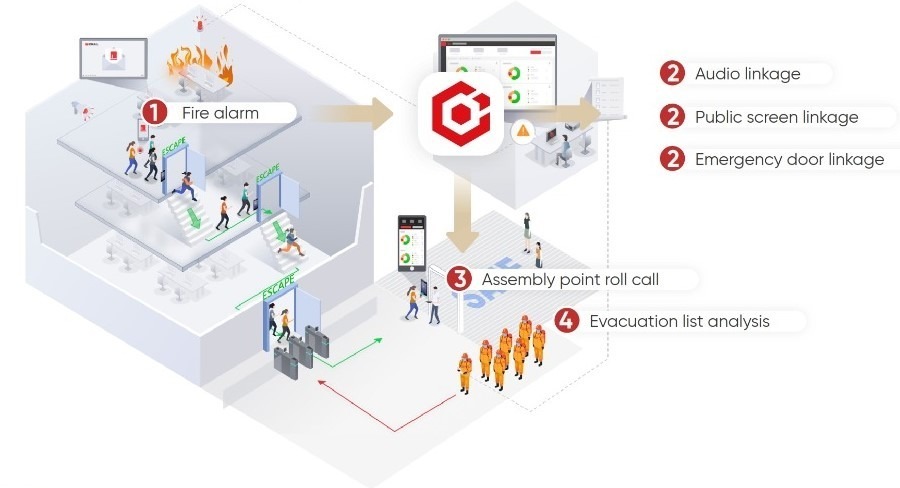 • Access terminals facilitate roll call in a secure location, comparing it with pre-emergency